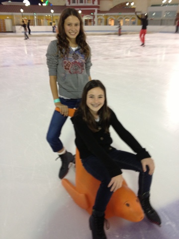 The Villagio is a mall here that is decorated like Venice complete with a canal running through the middle and gondola rides. The walls and ceiling are painted to look like sky and buildings in downtown Venice. It is really pretty. There is an ice skating rink here, so Tracy and I took the kids skating there. They had these awesome plastic seals that you could push while learning to skate and/or ride on while someone pushes you. The kids loved it and it totally taught Avery to skate within 1 hour of using it.